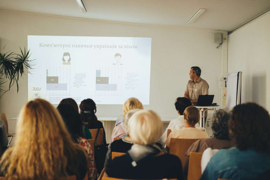 Am 02.10.2023 fand in der Familienbildungsstätte Ulm eine erste Informationsveranstaltung zu IDU 55+ statt. Das Team von ILEU e.V. stellte das Projekt vor, anschließend gaben ukrainische Digital-Mentor:innen Einblicke in verschiedene Möglichkeiten der Nutzung digitaler Medien und die Kursinhalte. Beim anschließenden Kaffee konnten die Teilnehmenden verschiedene Angebote im Internet ausprobieren und mit den Veranstaltern ins Gespräch kommen. Zudem gründete sich eine Interessensgruppe bei ViMA-Ulm, in der sich die Teilnehmenden untereinander austauschen können. Das Team von IDU 55+ dankte allen Beteiligten für den gelungenen Nachmittag und freut sich auf die gemeinsamen Stunden im Kurs!